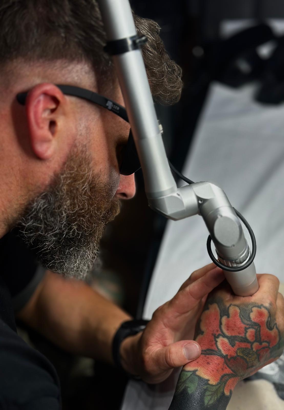 Pico laser tattoo removal uses ultra-short energy pulses to shatter tattoo ink into tiny particles, which the body then naturally eliminates through the lymphatic system. This “photo-mechanical” action is more effective and requires less heat than older “photo-thermal” lasers, leading to faster removal, more complete clearing, and suitability for difficult ink colours like blues and greens. A course of treatments is often needed for full removal, with the number and speed of removal depending on the tattoo’s ink colour, depth, and location.